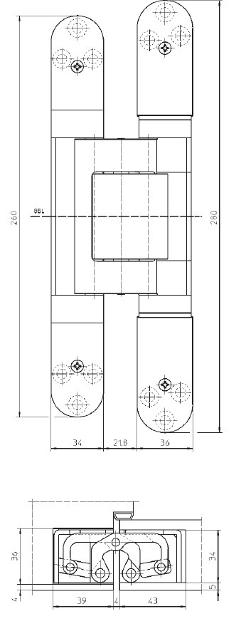 Kompletně skrytý závěs pro bezfalcové dveře s obložkovou, masivní