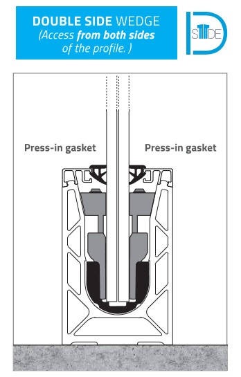 Těsnění profilu skleněného zábradlí Sadev, Press-in