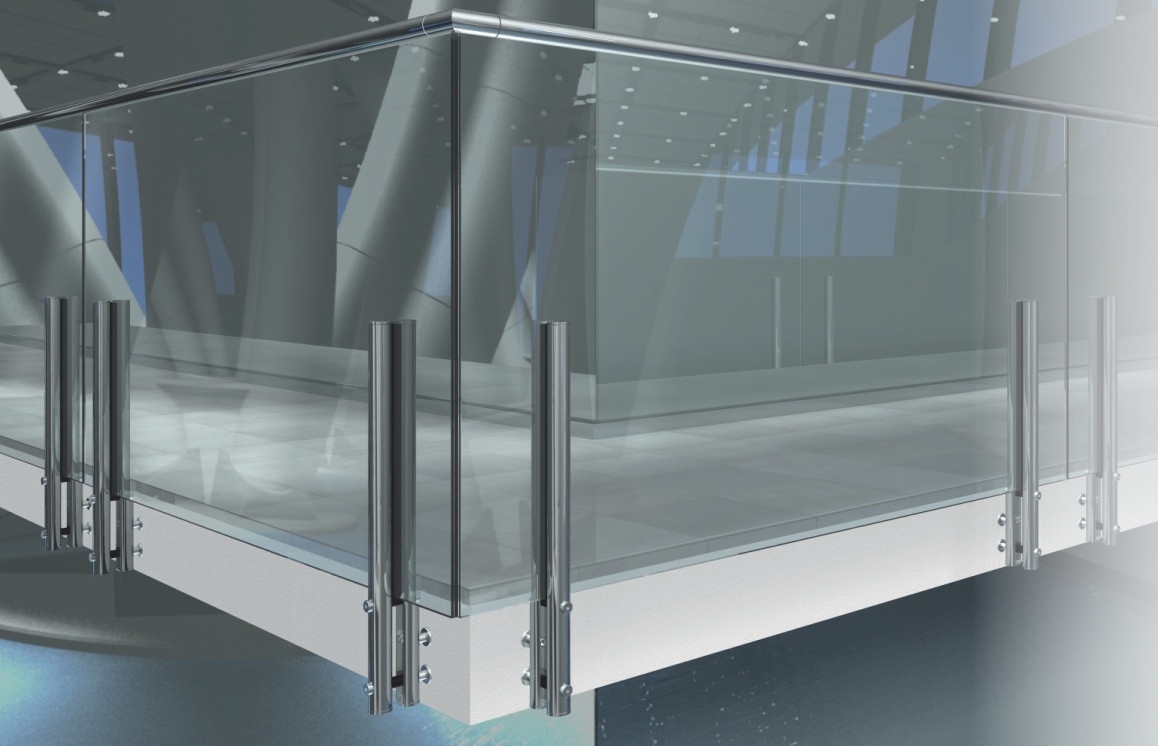 Maximální rozpětí skleněné desky při dvou úchytech činí 2100 mm při maximální vzdálenosti sloupků 1500 mm