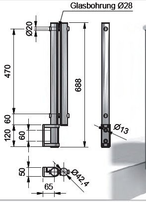 TWISTER - úchyt z boku 688 mm s vrtáním do skla
