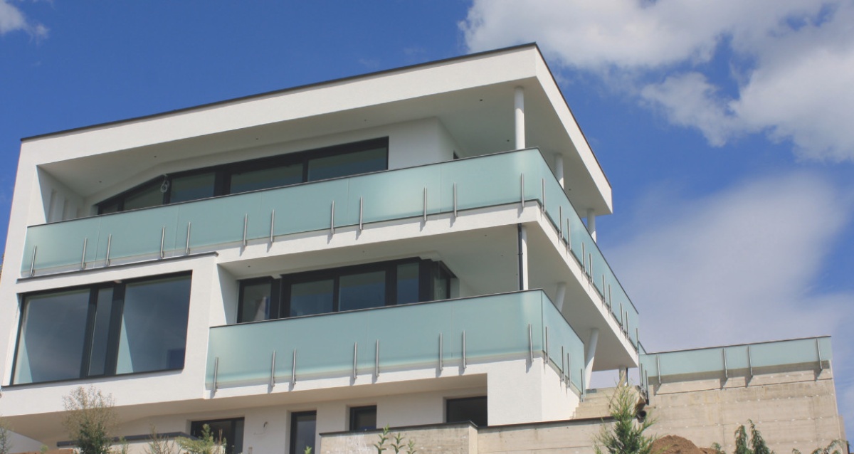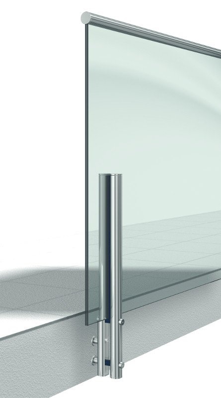 Maximální rozpětí skleněné desky při dvou úchytech činí 2100 mm při maximální vzdálenosti sloupků 1500 mm