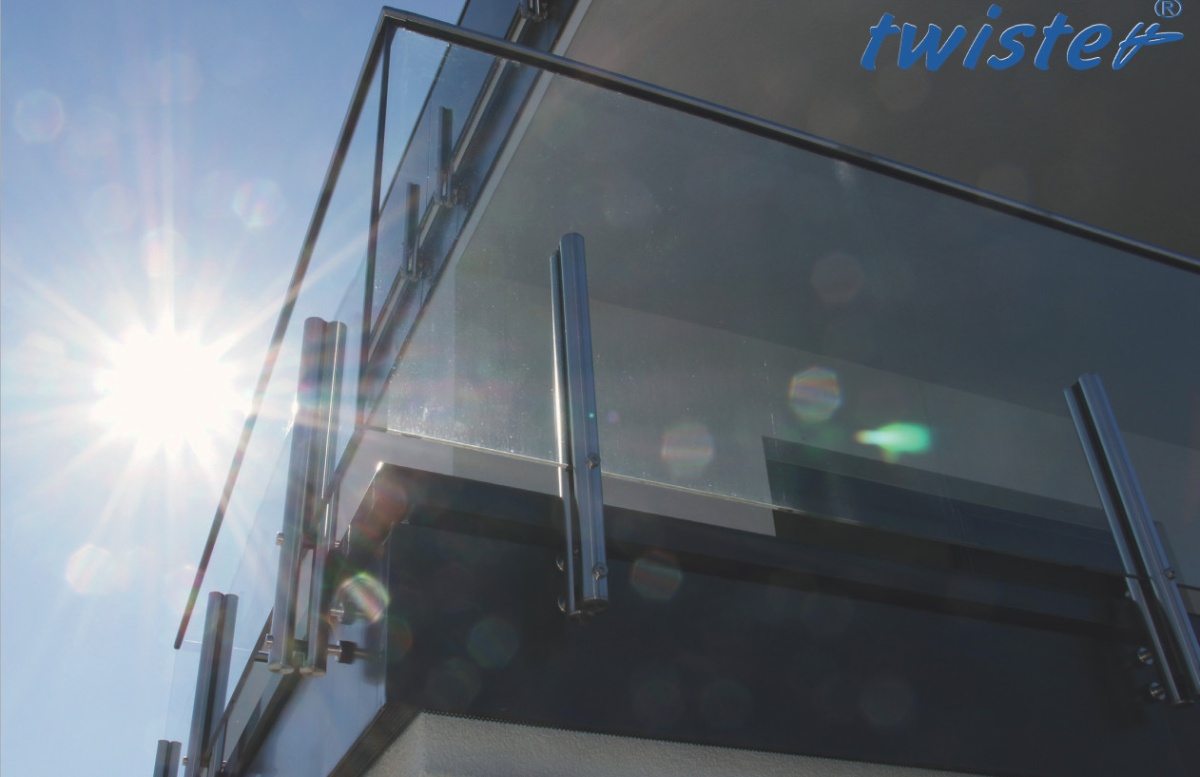 Twister úchyt pro skleněné konstrukce bez nutnosti vrtání do skla. Uchycení základny z boku.