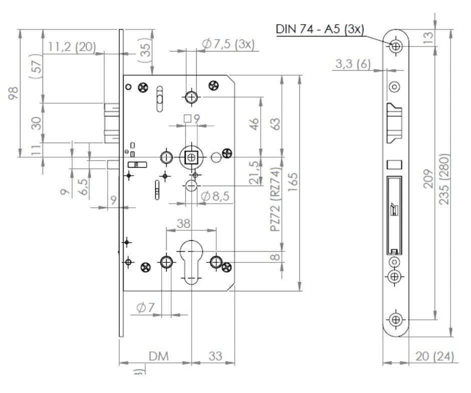 Zámek je nutné vždy osadit sestavou kování klika/klika. V neaktivním stavu jsou dveře vždy uzamčeny samozamykací střelkou a vnější klika je po stisknutí pasivní.