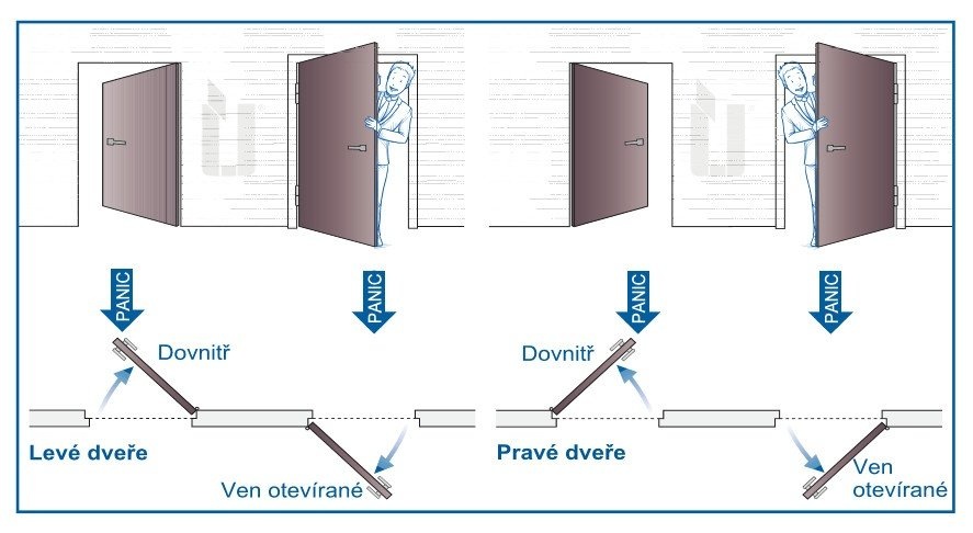 - Panikové provedení na vnitřní straně zámku. Zevnitř otevřete vždy pouze stiskem kliky.