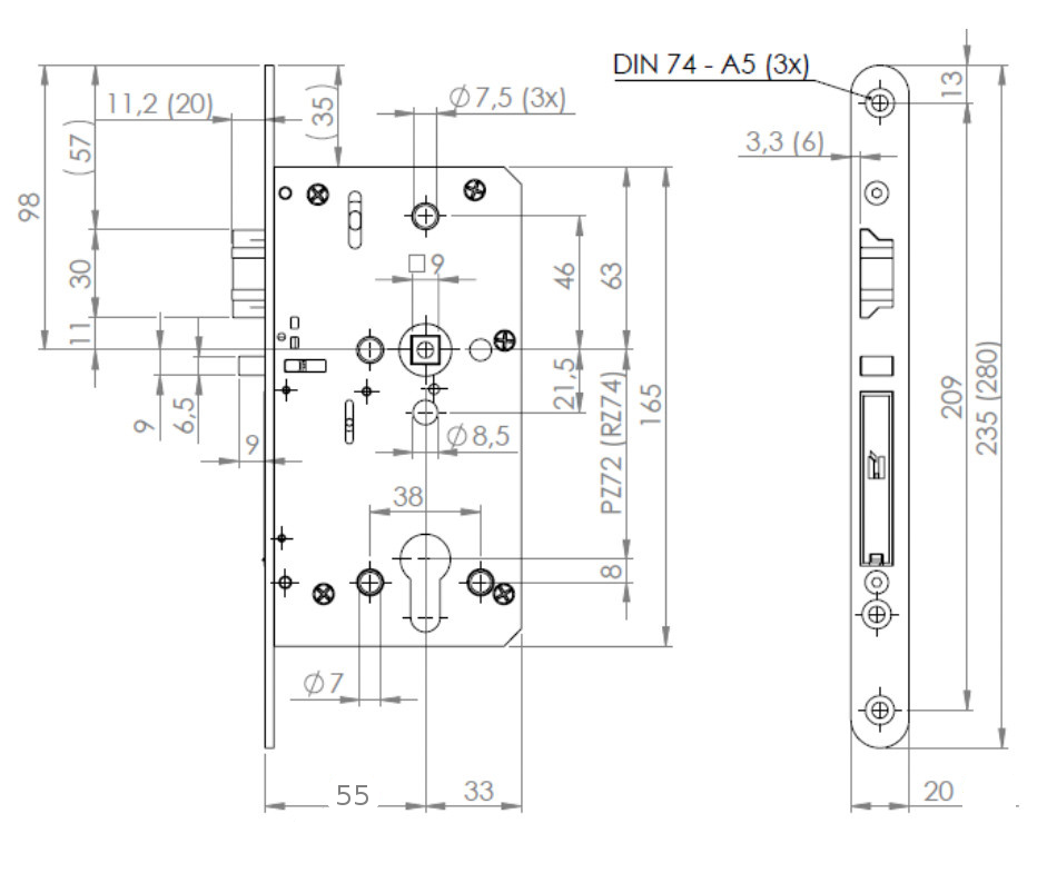 - Elektronika a řídící jednotka kování jsou integrovány a chráněny v těle zámku i dveřích.