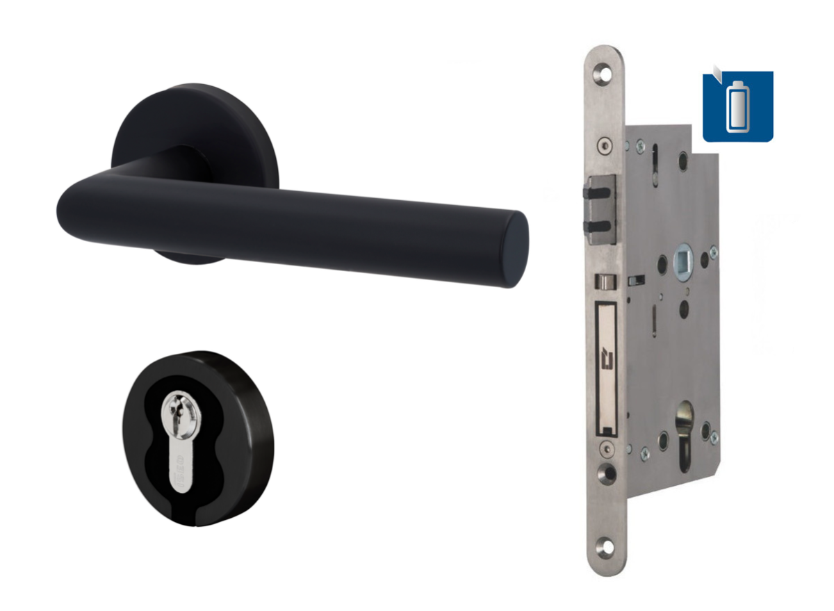 - Provoz na 2 baterie AAA ukryté v zámku. Nepotřebujete žádnou kabeláž ve dveřích ani v zárubni.