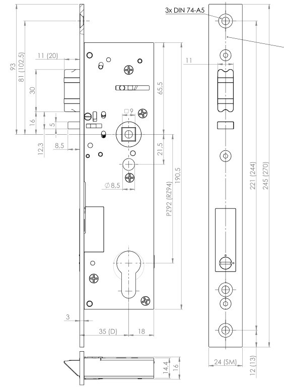 - Zámek je kompaktibilní se všemi typy dveřních klik a štítků pro rámové dveře. Doporučujeme kování Südmetall TopSpeed zde.