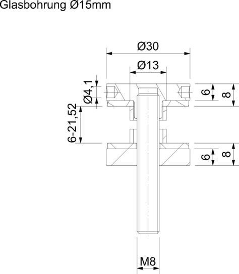 Univerzální bodový úchyt pro sklo s tloušťkou 6 - 21,52 mm