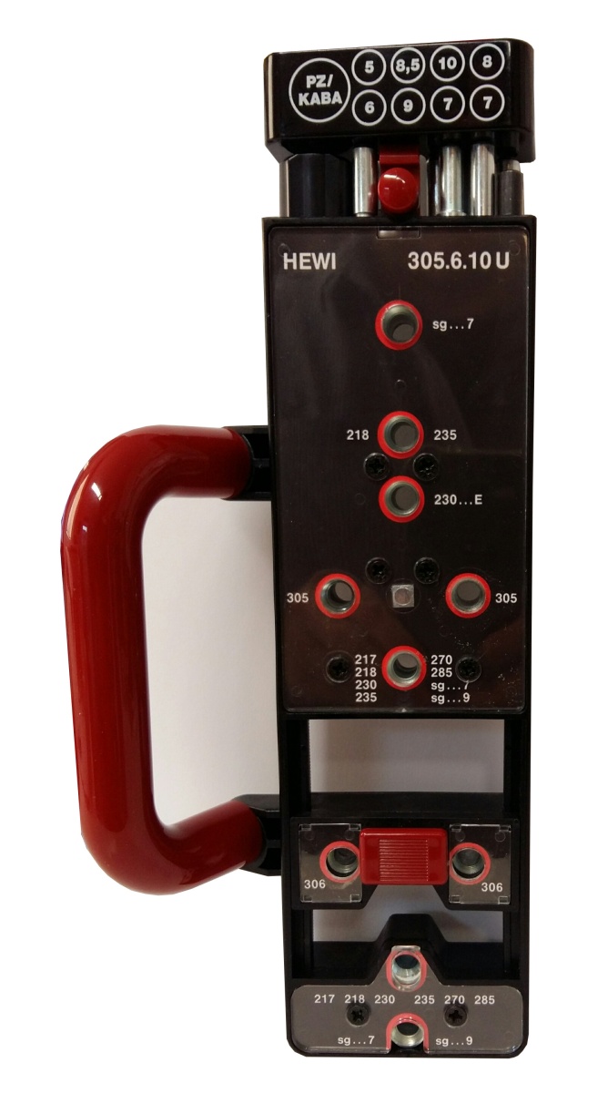 Otvory v šabloně pro vrtání jsou ocelové a kónické. Šablona je tak vhodná pro opakované použití i pro profesionální výrobu.
