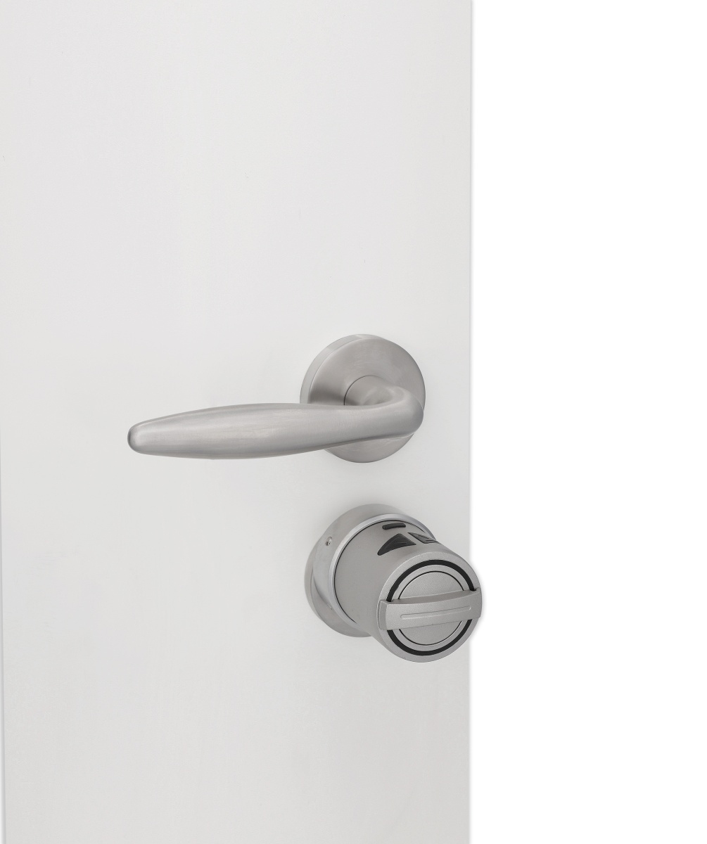 - Ütopic lze instalovat i společně s pevnou koulí nebo madlem na vnější straně dveří. ovládaná je střelka i závora.