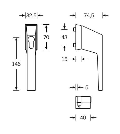 Okenní klička uzamykatelná vhodná pro kombinaci se standardní DIN půlvložkou. Vložku je nutné objednat samostatně.