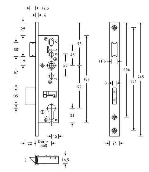 Úzký zámek pro rámové dveře hliníkové nebo plastové s drážkou.