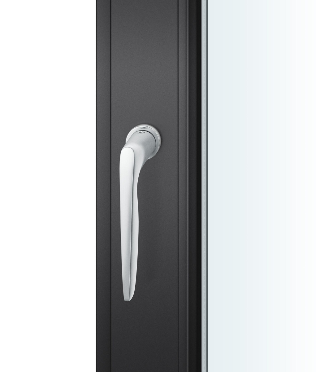 Vložená okenní klika FSB pro instalaci do kovových nebo dřevěných profilů.