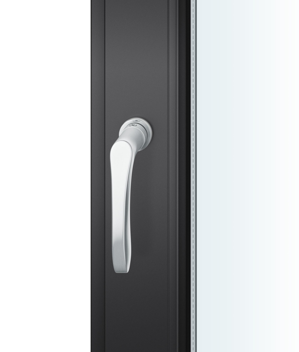 Vložená okenní klika FSB pro instalaci do kovových nebo dřevěných profilů.