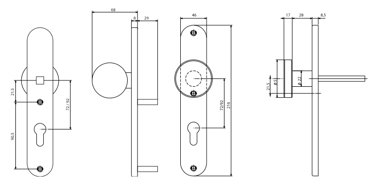 Vnější štít s klikou k panikové hrazdě GLOBAL