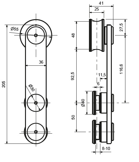 Vozík s kolečkem pro zavěšení skleněných dveří