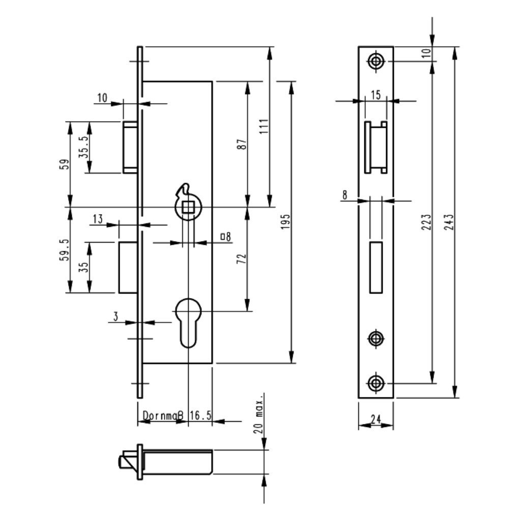 Úzký dveřní zámek SSF Serie 02 SHR hákový
