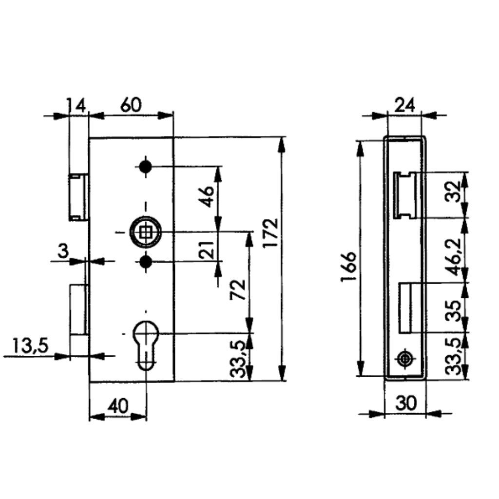 Zámek na branku, nerez, rozteč 72mm