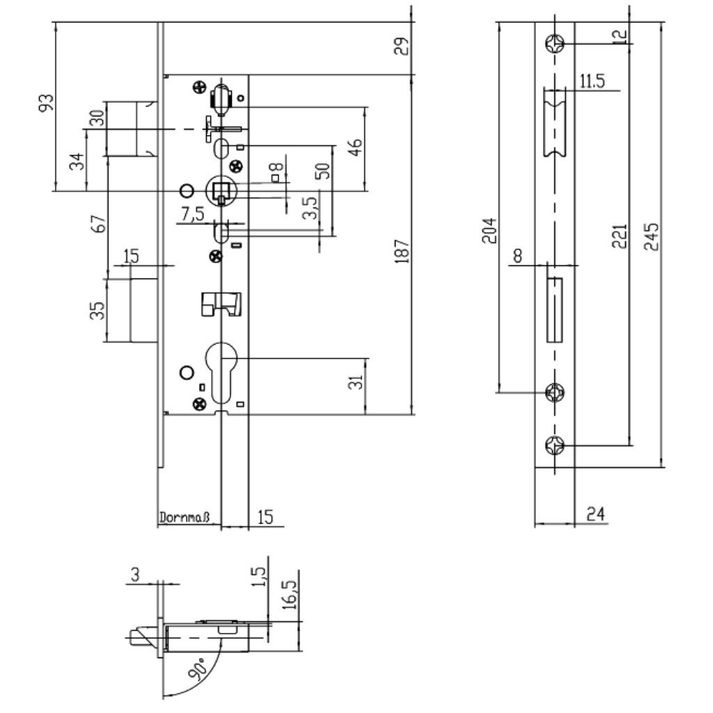 Úzký dveřní zámek SSF Serie 02 SHR hákový